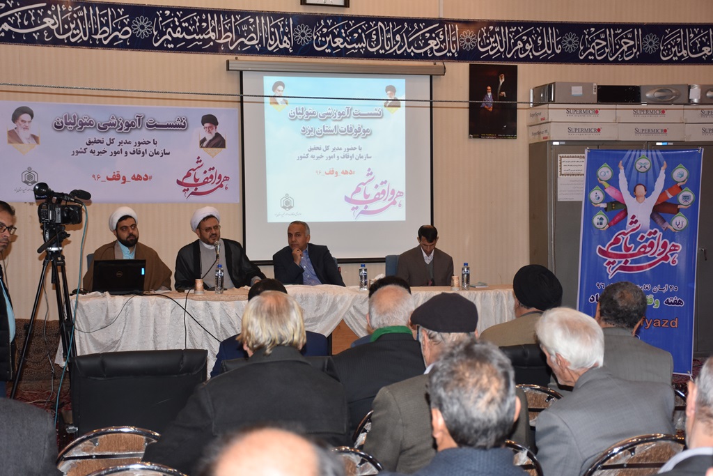 مدیرکل اوقاف و امور خیریه استان یزد در ادامه افزود: تولیت موقوفاتی که واقف متولی را مشخص نکرده است و همچنین موقوفاتی که متولی آن عهده دار امر تولیت خود نشده با حاکم شرع یعنی، ولی فقیه است و رهبر معظم انقلاب اسلامی نیز این امر را به نماینده خویش در سازمان اوقاف و امور خیریه تفویض کرده اند.