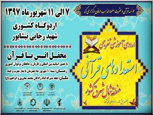 اردوي استعدادهاي قرآني منطقه شمال شرق كشور با حضور٢١٥ نخبه قرآني در اردوگاه شهيد رجايي باغرود نيشابور برگزار مي شود.