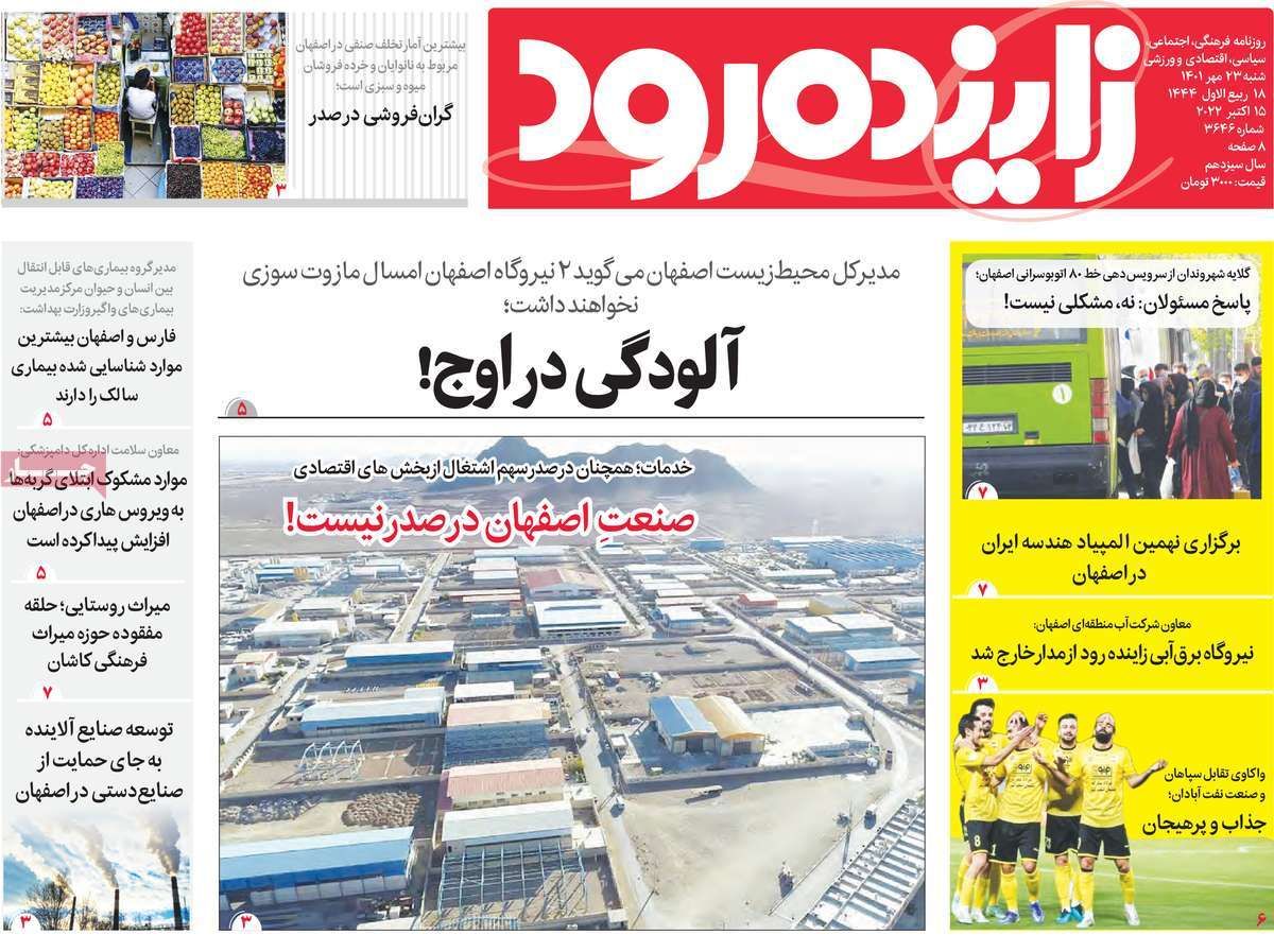 عناوین روزنامه‌های اصفهان در روز شنبه ۲۳ مهر ۱۴۰۱